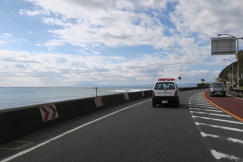11:31 ミニ・ペースカー 三浦半島に位置する自宅のある横須賀から脱出するのは大体3パターン。 南と東は海なのでなし。(×_×) 北は横浜横須賀道路で東名方面に出るか、首都高湾岸線で東京方面を目指すか、そしてもう一つは西に出て相模湾沿いに出るか。 今日は山中湖方面なので、西に出て相模湾沿いの国道134号線を走ります。 国道134号線で逗子の海岸沿いに出るとすぐに前方にミニ・ペースカー。 「邪魔でごわす。」 と思っても、国家権力には逆らえません。 |