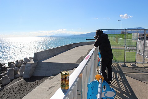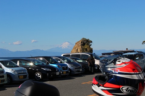 10:50 立石公園に 「はい、到着!」 って近すぎでしょう。(笑) やってきたのは自宅のある横須賀市の相模湾側にある立石公園の駐車場。 手前に写っている”立石”と相模湾を挟んで富士山が望める景勝地です。 まあ、正月と言えば「一 姫、二 太郎」でしょう。 じゃなくて、「一 富士、二 鷹、三 なすび」と言って、初夢のめでたい順ですが、初夢見なかったんでね。 その代わりにと、今日は富士山を撮っておこうと思った訳です。 ただ駐まっているクルマが多くて、海側にバイクが駐められなくて、この位置だと相模湾が写りません。(ToT) この立石公園の駐車場、横須賀市営で無料なので、平日の昼間にクルマで来て、サボって昼寝するには最高です。(笑) ただし、週末、休日は混んでます。 |