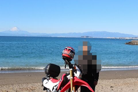 11:00 長者ヶ崎から 立石公園があまりに混んでいたので、国道134号線をちょっと北上して”長者ヶ崎”までやってきました。 長者ヶ崎の北側にある砂浜の長者ヶ崎海水浴場へ。 車止めがあってクルマが進入できませんが、バイクが通れる道があったので、砂浜近くまでバイクを寄せて。 |