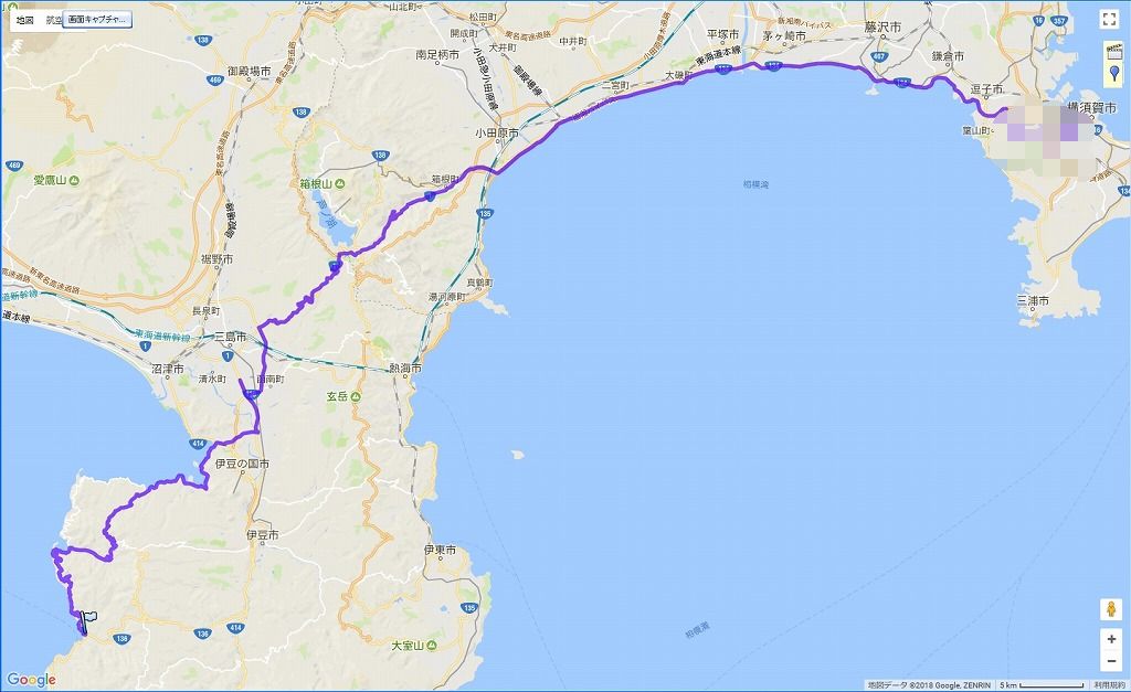 | 往路の道程:自宅~西湘バイパス~箱根峠~西伊豆~土肥:147.9km | |