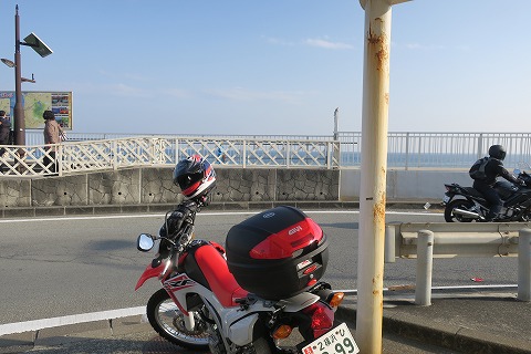 15:34 西伊豆の 三島市内の国道136号線沿いにある shell で給油した後、狩野川(かの がわ)放水路沿いに西走して西伊豆の海岸沿いに出ました。 静岡県道17号沼津土肥(ぬまづ とい せん)線で西伊豆の海岸線に沿って西走を続けます。 ここまでGSX-Rだとあっという間に着いてしまう感覚ですが、、CRFだとそれなりに走った感がありますね。 もう3時半を回りました。 先を急ぎましょう! |