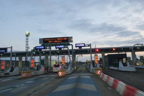 5:37 社宅から 今回は仕事先の金町の社宅から出発。 夜の内に、事務所の駐車場(ちょっと遠い)から社宅近くのコインパーキングに移動しておきました。 葛飾区の金町を出発したら、三郷に出て国道298号線を北上して、三郷南インターから首都高速に上がり、北上して常磐自動車道の三郷本線料金所までやってきました。 ここまで30分かからず来られるのは、楽だね。 |