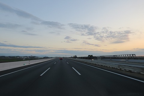 5:43 利根川を渡る 常磐道を北上して、朝焼けが残る空を眺めながら利根川を渡ります。 利根川を渡ると茨城県に入ります。 茨城県は”いばらき”と発声して、”き”は濁りません。 お隣の栃木県は”とちぎ”と発声して、”ぎ”と濁ります。 と、朝っぱらからどうでもいい知識。 (-_-;) 茨城県に入ると、前方に筑波山が見えてきます。 (写真だと小さくてわからないね) |