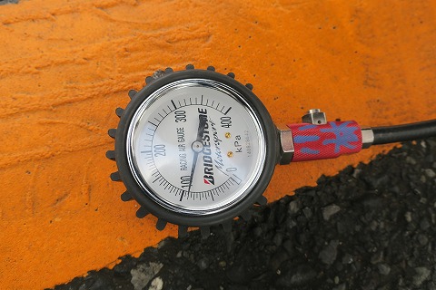 6:41 エアー圧をチェック ハイエースからCBRをハイエースから下ろしたら、まずはタイヤのエアー圧をチェック。 去年の6月に走ったときは、200kPa弱くらい入っていたんだけど、9ヶ月放置したら、約半分の100kPa弱まで落ちちゃいましたね。 21日にバイクを積むときにエアーを入れようと思ったんだけど、雪降ってたんでくじけて、そのままハイエースに積んじゃいました。 コンプレッサー無いんで、空気入れでエッチラ・オッチラ入れます。 |