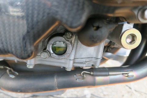 8:18 レベルを確認 オイルを入れたらレベルをチェック。 軽くエンジン回して、オイルが落ち着いたところで、もう一度オイルレベルをチェックして。 OKだったら、ドレンボルトとフィラーキャップをワイヤ・ロックしておきます。 とりあえず、ここまで準備しておけば、走行はできます。 |