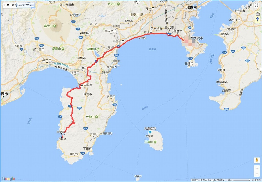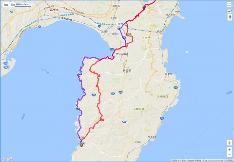 | 復路の道程:松崎町〜仁科峠〜西伊豆スカイライン〜戸田峠〜西浦〜箱根峠〜横須賀:164.7 km | |