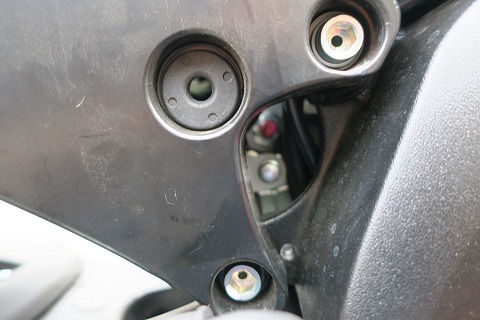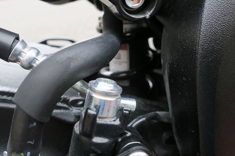 15:19 圧力スイッチに交換 ステップを交換する前に、マスターシリンダが固定されている内に、まずはブレーキ ランプ スイッチを交換しちゃいます。 写真はノーマル。 写真中央の六角ボルトをはずして、圧力スイッチに交換するんだけど、この六角ボルトの薄いこと。 変にこじったら、すぐにネジなめそうです。( ̄。 ̄;) |