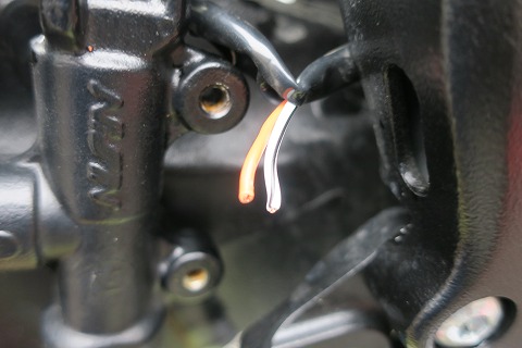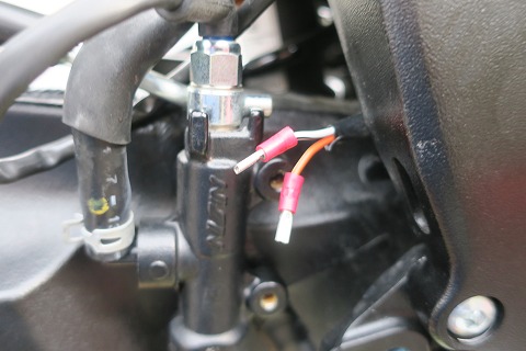 15:38 切りすぎた ブレーキ ランプ スイッチを切った残りのケーブル。 これに、新しく取り付けた圧力スイッチを接続すれば良いんですが・・・・。 切りすぎた。(汗) リヤ ブレーキはほとんど使わないので、面倒なのでケーブルをつなぐの止めようか。 と、一瞬思ったけど、ダメだ。 車検通らないじゃん。 と言うことで、あきらめて、つなぎます。 |