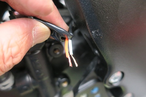 15:40 届かない! ケーブルが短くて、ケーブル ストリッパ がフレームが邪魔で入らない、届かない! (T_T) 仕様がないので、カッターで被服を剥きました。 (笑) (芯線切りそう。) |