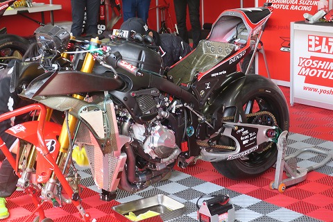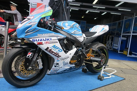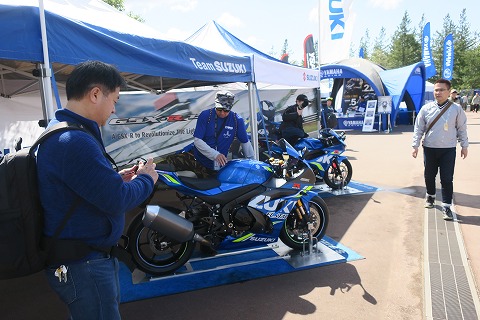 10:18 SUZUKIの展示ブース 中央エントランスを入ると各メーカの展示ブースが設けられています。 今日のタイム・スケジュールでは、朝の8時から10時過ぎまでは、各クラスのウォーミングアップが行われます。 決勝レースの最初はJ-GP3クラスで10時半過ぎ。 レースが始まるまでまだ時間があるので、各メーカの展示ブースをサラッとパトロール。 まずは、自分が乗っているGSX-Rのメーカー、SUZUKIから。 SUZUKIは、昨年デビューした新型のGSX-Rを展示中。 騒音対策の大きなマフラーが個人的には好きくなれませぬ。 |