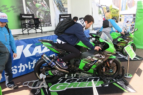 10:22 JSBモデルに しかも、レースモデルにも跨がれちゃう、と言うサービス。 展示用に作られたものかもしれないので中身はわからないけど、外観はJSB1000。 JSB1000のバイクなんて、跨がれる機会はほとんどないので、レースファンには嬉しいですよね。 お客さんのハートをつかんでいます。 |