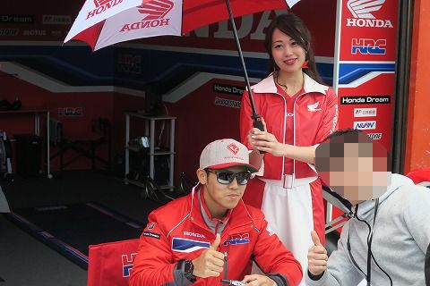 11:47 HONDA ワークス こちらは、HONDA ワークス のHRC。 去年、MUSASHI でチャンピオンを獲得した高橋 巧 選手。 HRCが連れてっちゃった。(笑) |