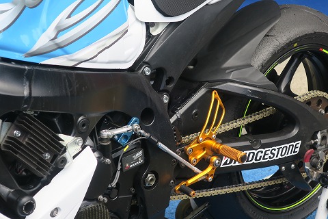 11:48 baby face のバックステップ SUZUKI系のTeam KAGAYAMA。 自分が昨日取り付けた baby face のバックステップを付けてます。 自分のは、ボディと同じ色のブラック・アルマイトだけど、こちらは金ぴかのゴールド。 派手だね。(笑) |