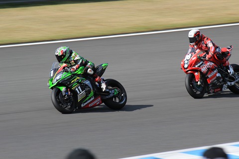15:09 3位争いは 1位と2位はYAMAHAの中須賀選手と野左根選手が先行していますが、こちらは3番手争い。 前を行くのは#11、Team GREEN の渡辺一馬選手。 後ろは#26、ヨシムラの渡辺一樹選手。 ヨシムラの渡辺一樹選手は2年前までTeam GREEN でライディングしていました。 そして、渡辺一樹選手が抜けた後を HONDA系のコハラ RTから移籍しました。 渡辺一樹選手は昨年 WSS(world super sport)で1シーズンを過ごし、ヨシムラでJSBに復帰しました。 同じKawasakiのマシンに乗ったもの同士、先にゴールしたいでしょうね。 |