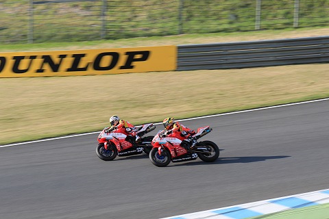 16:22 同じチーム同士で その後、トップ争いは、日本郵便HONDA DREAM チーム同士。 中盤を過ぎて、#55の 國峰選手がトップを奪取して、2番手の小山選手を引き離しにかかります。 同じチーム同士、エキサイティングな駆け引きが続きます。 |
