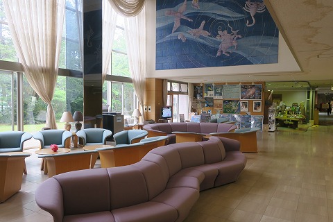 17:16 広い 1階のホール、広いです。 ロケット打ち上げの時とか、関係者とかマスメディアの人とかが泊まるんでしょうか、会議室なんかもあって、施設が整ってます。 |
