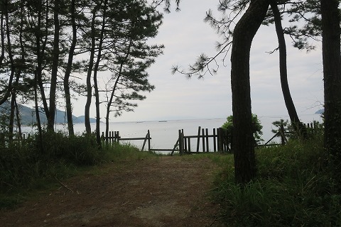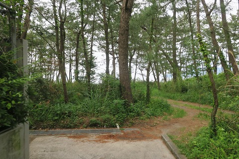 17:19 海へ 建物の脇をとおって、海の方へ松林を抜けていきます。 |