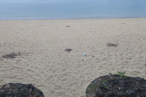17:20 ベージュ色の 砂浜に出ると、ベージュ色の砂がきれいです。 ゴミなんてほとんど無いね。 近くにウミガメの産卵地があるので、きれいにしているんでしょうね。 |