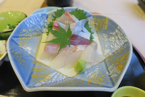 18:31 お刺身 料理は会席風に、順番に運ばれてきます。 ので、全部そろった写真は撮れません。 まずはお刺身で、タイとカツオとカンパチだったかな。 美味しいです。 (^□^) |