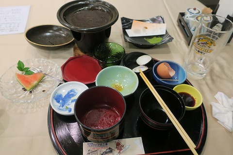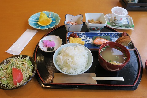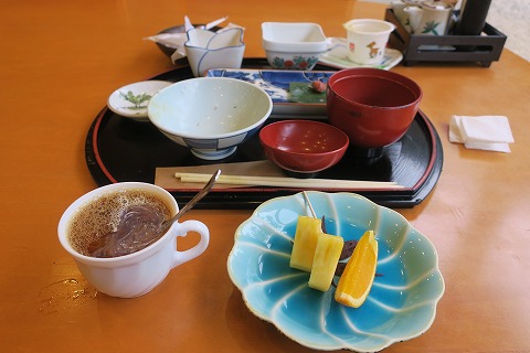 7:38 朝食は いたって平和な日本の朝食。 つけ揚げ(さつま揚げ)が供されているところが、ちょっとだけ鹿児島感をかもし出していますが。 最近は、九州でも納豆が付くんですね。 |