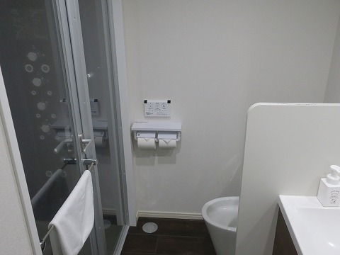 15:06 バスルーム チェック ハイ! 本日のお宿のトイレとバスルームのチェック。 バスルームと思ったら、シャワールームでした。 このホテル、大浴場があるんですね。 (知らずに予約しました) なので、部屋にはバスタブは無くて、シャワーのみ。 洒落た感じのガラス張りのシャワールームでした。 けど、自分は大浴場派なので、後で大浴場に行きます。 |