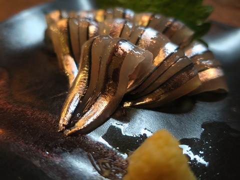 18:11 キビナゴ 鹿児島に来たら是非食べなきゃいけない刺身の一つ、キビナゴ。 カタクチイワシ同様、包丁は使わずに手開きで刺身にしていました。 キビナゴは、ショウガ醤油もしくは、カラシみそでいただきます。 カラシみそも美味しいけど、さっぱりとしたショウガ醤油で食べた方がキビナゴの味がよくわかって、好みですね。 |