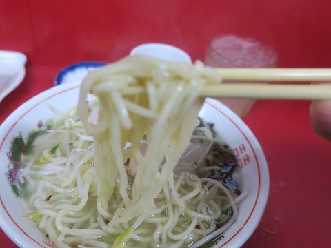 22:51 胃に優しい それでは、「いただきます。」 「ああ、美味しい。」 スープの見た感じ同様、あっさりです。 最近、こってりが苦手になってきた自分としては、これはイイですね。 この時間に混み合っているのも納得です。 麺は中細(?)ぐらいのストレート。 ちょっと柔らかめに茹でられていて、〆のラーメンとして胃に優しいです。 |
