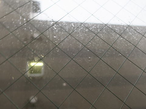 8:57 凄い 席を立って、部屋に戻る途中、窓の外を見ると、ガラスに叩き付けるような凄い雨だね。 西南戦争の激戦地となった城山も、雨に霞んでいます。 空に浮かぶ淡いオレンジぽいうにゃうにゃは、室内の蛍光灯がガラスに映り込んだものだ。 雲ではない。 |