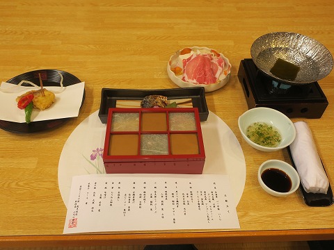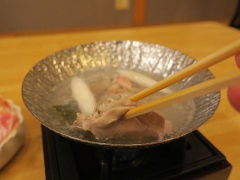 19:52 豚シャブ 定番の会席料理にはありませんが、鍋物で豚シャブ。 やはり、鹿児島なので豚です。 豚は茶美豚と書いて、チャーミートンと読むそうな。 鹿児島県特産のブランド豚だそうで。 豚の脂は甘みがあって、美味しいです。 もっと食べたいところです。 |