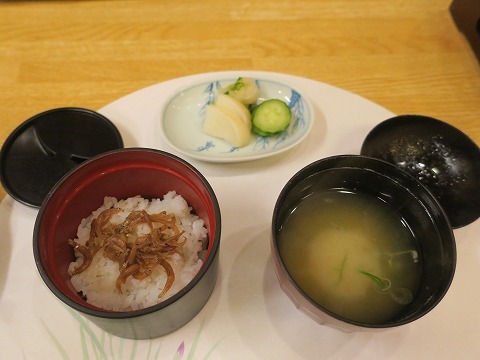20:19 〆は 〆はご飯とお椀2杯目になる止め椀。 ご飯はちりめんが添えられています。 みそ汁は、鹿児島ではメジャーな麦味噌。 甘みが強いです。 けど、嫌いじゃありません。 |