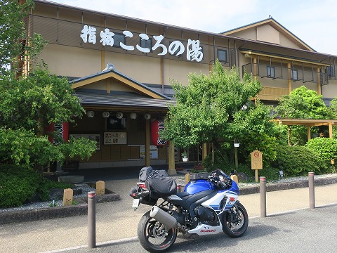 9:03 出発 荷造りしていたら、結構時間がかかっちゃいました。(汗) バックのカバーはまだ乾いていなかったので、仕舞うわけにいかず、乾かすためにカバーをかけておきます。 荷造りをしたら、温泉施設の”指宿こころの湯”の前にバイクを移動して、写真を一枚。 それでは、ゴールデンウィークのツーリング5日目、出発することにしましょう。 |