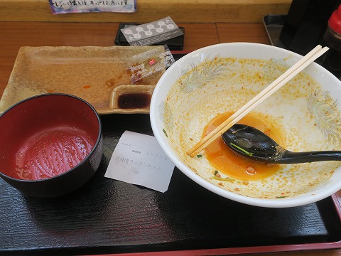 12:09 定番の 注文は定番中の定番の”肉味噌ラーメンセット”。( 980円) 芸がありません。 東名でここを通る度、ほぼ100%と言って良いほど、肉味噌ラーメン。 「そんなに美味いのか?」 と聞かれれば、 「それほどでもない。」 「ちょっとだけ、美味しい。(笑)」 |