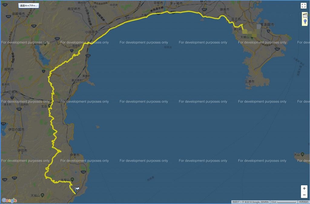 | 帰路の道程:伊豆高原〜伊豆スカイライン〜自宅:130.4 km | |