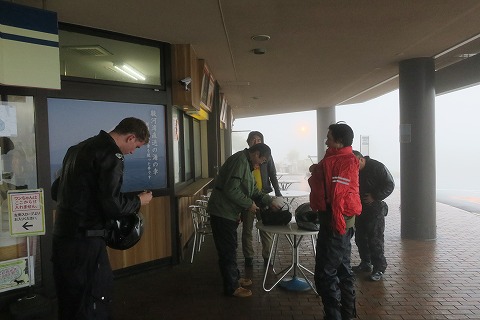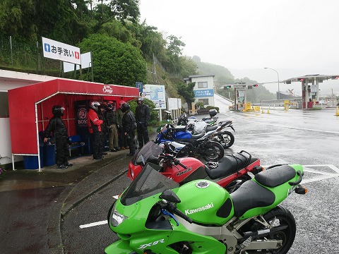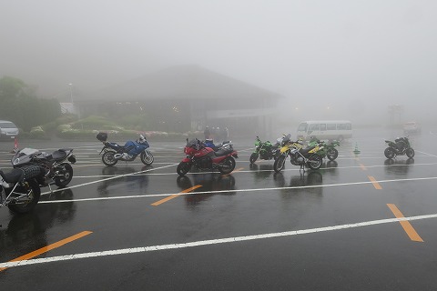 13:15 ダメでした 降られたね。 しっかりと。(爆) 昼食を食べた伊豆高原駅近くの”うまいもん処”を出発した後、往路と同じルートで天城高原料金所から伊豆スカイラインに入り、北上して起点の熱海峠料金所まで。 途中からじゃじゃ降りの雨。 (-_-) その後、県道20号熱海箱根峠線に入り、十国峠ケーブルカー・レストハウスまでやってきました。 (降られちゃったので、途中の写真はありませんよ。) 入り口近くの普通車枠は空いていたので駐輪しようとしたら、警備のおっちゃんに 「ここはダメ。 あっちに停めて!」て。 ガラガラなのにね。 と言われちゃったので、奥の観光バスの枠に好き放題に停めさせていただきました。(笑) |