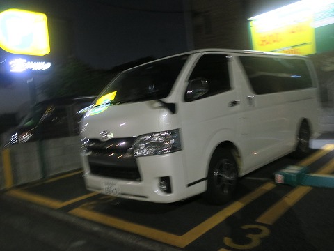 3:21 社宅から出発 今日は、エビスサーキットの走行会です。 ゲートオープンは朝8時。 昨年から葛飾区の金町に単身赴任しているので、今回も金町から出発です。 ハイエースは社宅近くのコインパーキングに。 社宅からプラプラ歩いて3分くらい。 (上手いことブレて、所在がわからないね。d)(笑) それでは、1泊料金400円を払って、出発します。 |