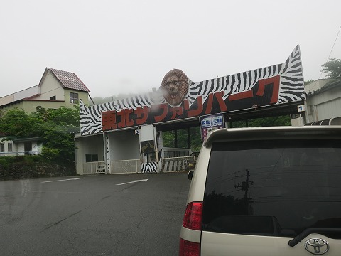 7:34 東北サファリパークに到着 二本松インターを下り、セブンイレブン経由でエビスサーキットのある東北サファリパークのゲート前に到着。 他の参加メンバーも到着済の様です。 ここに向かう途中、徐々に標高を上げて行くと、ポツリポツリと雨粒が落ちてきました ゲートが開くまで、しばし待つことにします。 |