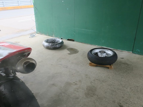 9:40 レインタイヤに レインタイヤに入れ替え完了。 4年もののレインタイヤってちゃんと機能してくれるのかな? もともとウェットコンディションって苦手意識があることもあって、イマイチ信頼しきれないんですよね。 |