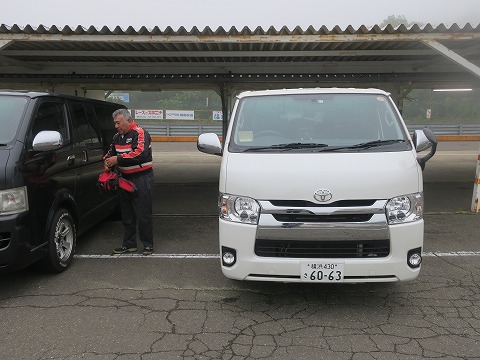 9:59 走るんだぁ~ バイクの準備ができたところでカッパを着込んで走る準備。 霧雨で走る気が全然ない岩井さんがやってきて、 「走るんだぁ~。」って感じで眺めてます。(笑) ※ 写真はアイスエイジさんが撮影。 |
