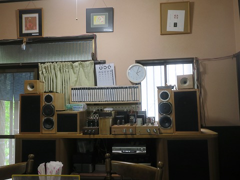 14:04 趣味のオーディオ 店内はオーナーの趣味のオーディオが置かれています。 真空管アンプは自家製。スピーカー自家製もあるみたい。 真空管アンプの台にされているスピーカは、名器と言われた DIATONE 2S-305 かな。 |