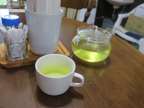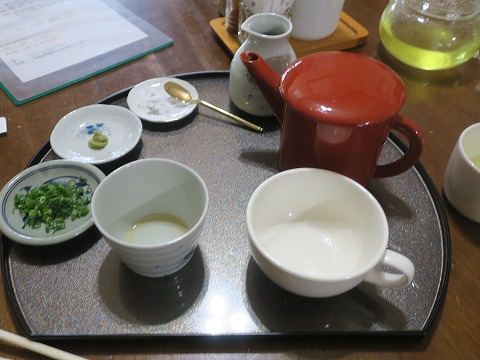 14:06 そば茶 しばらくして、そば茶が供されました。 香ばしいいい香りですね。 ガラスの急須に白のカップで出てくるので、初めての時はちょっとビックリします。 けど、洗練された味には、違和感は無いですね。 |