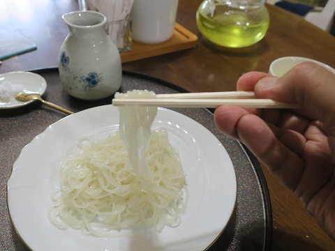 14:12 すっきりと それでは、「いただきます。」 透き通るような白色の麺体がきれいですね。 よくここまで細く打つもんだと関心してしまいます。 デンプン質が少ないので、サッパリとした味わいをしています。 |