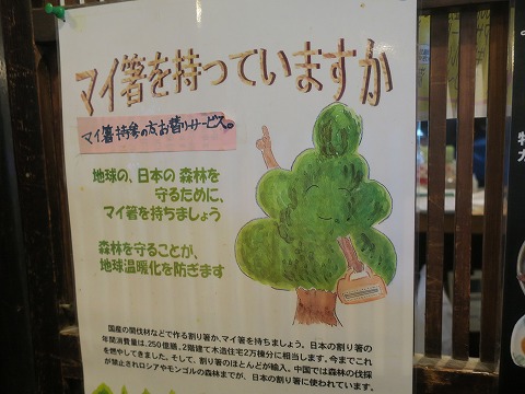 15:28 マイ箸は そして、”マイ箸”を持参すると、”お替わりサービス”とな。 (O_O) それじゃ、11日にマイ箸を持参すると、大盛りを食べられる上に、お替わりもサービス! か。 でも、11日に訪れたら、なんとなくこの付箋で張られたような、お替わりサービスは外されているような気がする。 是非、11日に訪れてみたいものだ。(笑) |
