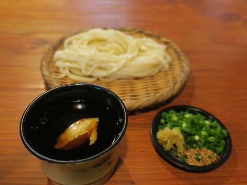 15:29 ざるうどん なんて、心の中で物事を斜めから考え一人ほくそ笑んでいると、注文したざるうどんが運ばれてきました。 (一人ニタニタしているおじさんは、端から見るとかなり気持ち悪いぞ!) さて、ざるうどんは、以前訪れたときと同じスタイル。 汁には自然薯が浮かべてあり、薬味は青ネギとおろしショウガと白ごまです。 それでは、さっそく「いただきます・」 |