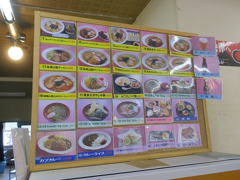10:59 注文は 1階のお土産売り場を突っ切って、階段を上がりレストランのある2階へ。 券売機の上にある写真を眺めて、 「何にしようかなぁ〜。」 「やっぱり喜多方ラーメンかなぁ。」 |