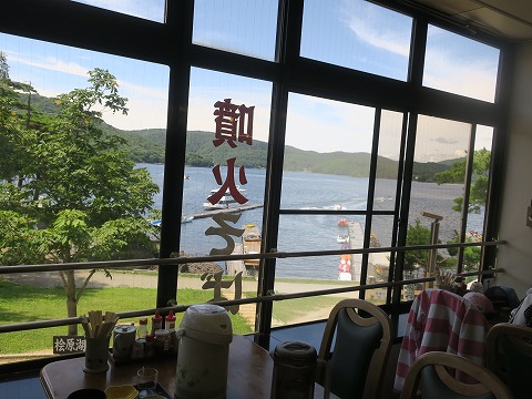 11:46 窓からは 2階のレストランの窓からは、桧原湖が臨めます。 今日は天気が良くて、気持ちいい。 |