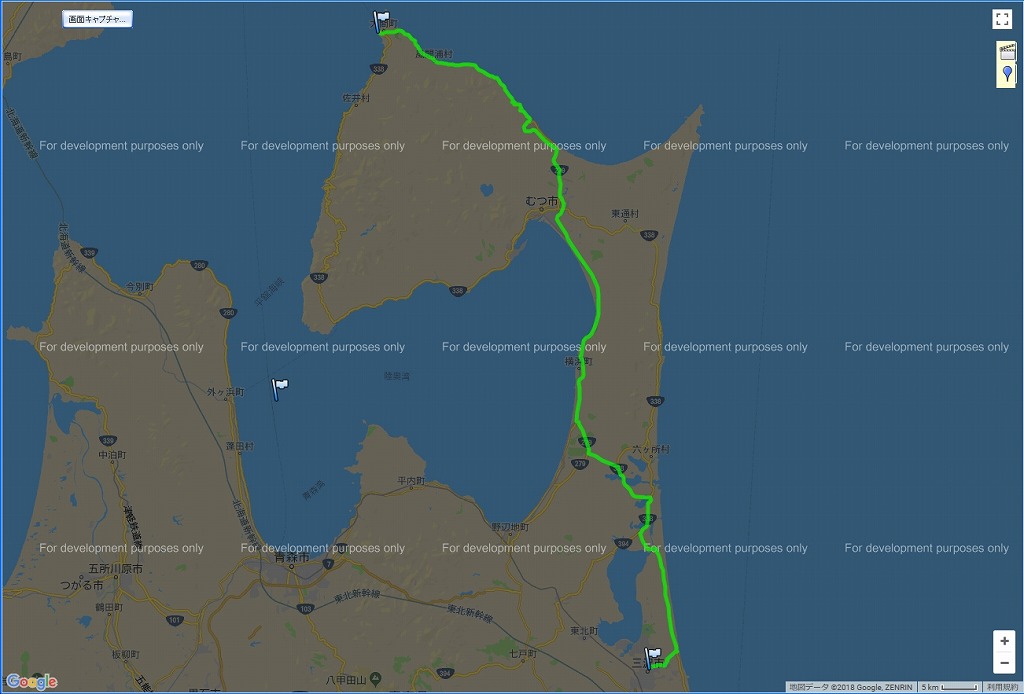 | 9月6日(木)朝の道程: 三沢〜大間 :129.9 km | |