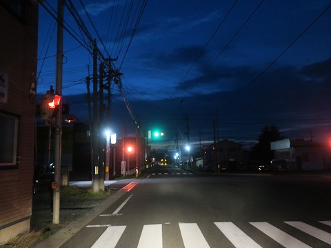 4:25 まだ暗い ホテルを出発して、三沢の市街地を抜けます。 空が明るくなり・・・・、始めてません。 デジカメで写すと少し空が明るくなって見えますが、肉眼だとまだ真っ暗です。 |