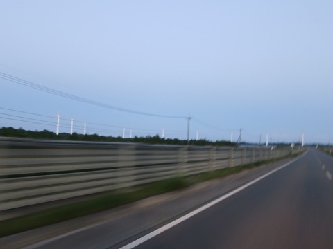 4:52 風力発電施設 三沢から国道338号線に入り北上、六ヶ所村に入り、名無しの県道に入り西走して陸奥湾側を走る国道279号線を目指します。 六ヶ所村と言えば、原子燃料サイクル施設などの原子力施設で有名ですが、やませを利用したたくさんの風力発電施設が立ち並んでいる様は、壮観です。 |