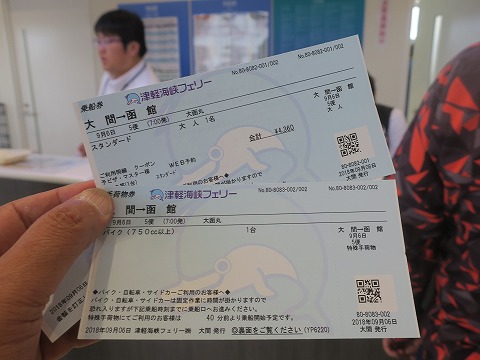 6:08 大間フェリーターミナル 国道279号線を北西にバイクを走らせ、大間のフェリーターミナルに到着しました。 7時出港ですが、先着組のバイクが3〜4台すでに並んでました。 フェリーは予約済ですが、早速チケットを買いに行きましょう。、 |