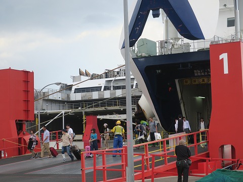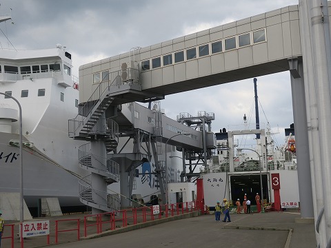 14:41 徒歩で クルマの下船が終わったら、徒歩のお客さんの下船です。 当初、土曜日に帰る予定で予約した苫小牧発のフェリーは、キャンセルしようと苫小牧のフェリーターミナルに電話をしましたが呼び出し音もならず。 試しに大洗のフェリーターミナルに電話しましたが、呼び出し音は鳴りますが、忙しいんでしょうね。 出ません。 スマホを使って、ネット経由でキャンセルすることができました。 高いだのなんだのと言われていますが、携帯のネットワーク網、凄いですね。 |